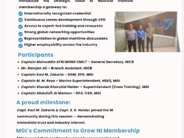 Aligning with the IMO 2030 vision for decarbonization and the global pursuit of net-zero emissions by 2050, The Nautical Institute Chittagong Branch successfully organized a technical seminar titled “LNG & FSRU Operations in Bangladesh – Linking Global Trade, Shaping Future Professionals.” The event was held on 11 December 2025 at the Cadet College Club, Agrabad, Chattogram.