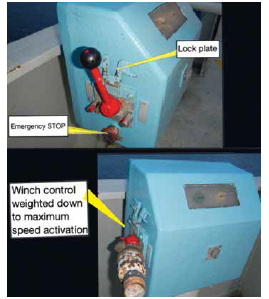 - The two aft lines were winched home simultaneously with the winch control lever locked to high speed, probably because the victim wished to stow them at the same time as winching in.
