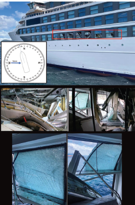 A clearer picture of the extent of the damage became evident, and as the damage appeared to be limited to a relatively small area and the emergency was considered under control, a general muster was not initiated. Passengers were instructed to remain in their cabins, except for the passengers in the damaged area, who were instructed to proceed to deck A. It was later found that seven cabin windows on the port side of deck 2, approximately 8 metres above the waterline, had shattered when the wave struck the ship.