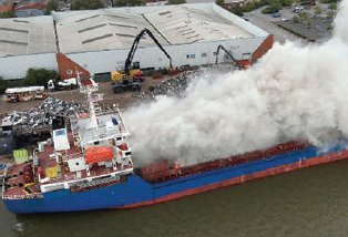 The fire was extinguished the next day. There were no injuries and there was no loss of life. Over several days, crew discharged the contaminated firefighting water from the hold into road tankers for disposal. The scrap cargo was discharged and surveyed to check its composition. The vessel had suffered significant heat damage to structural steelwork in the aft cargo hold.